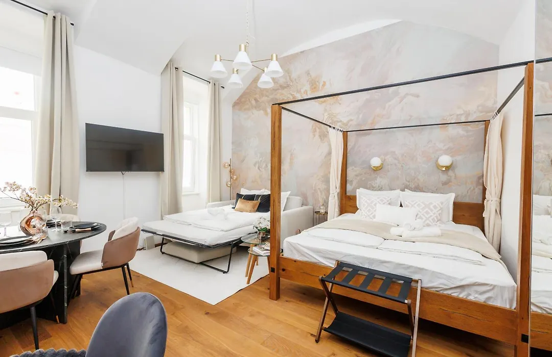 Il Roman Style Apartment Near City Centre include servizi di self-catering, come un angolo cottura attrezzato con una macchina per caffè e tè, un frigo e utensili da cucina. La fermata dell'autobus Kleine Stadtgutgasse è in prossimità di quest'appartamento.